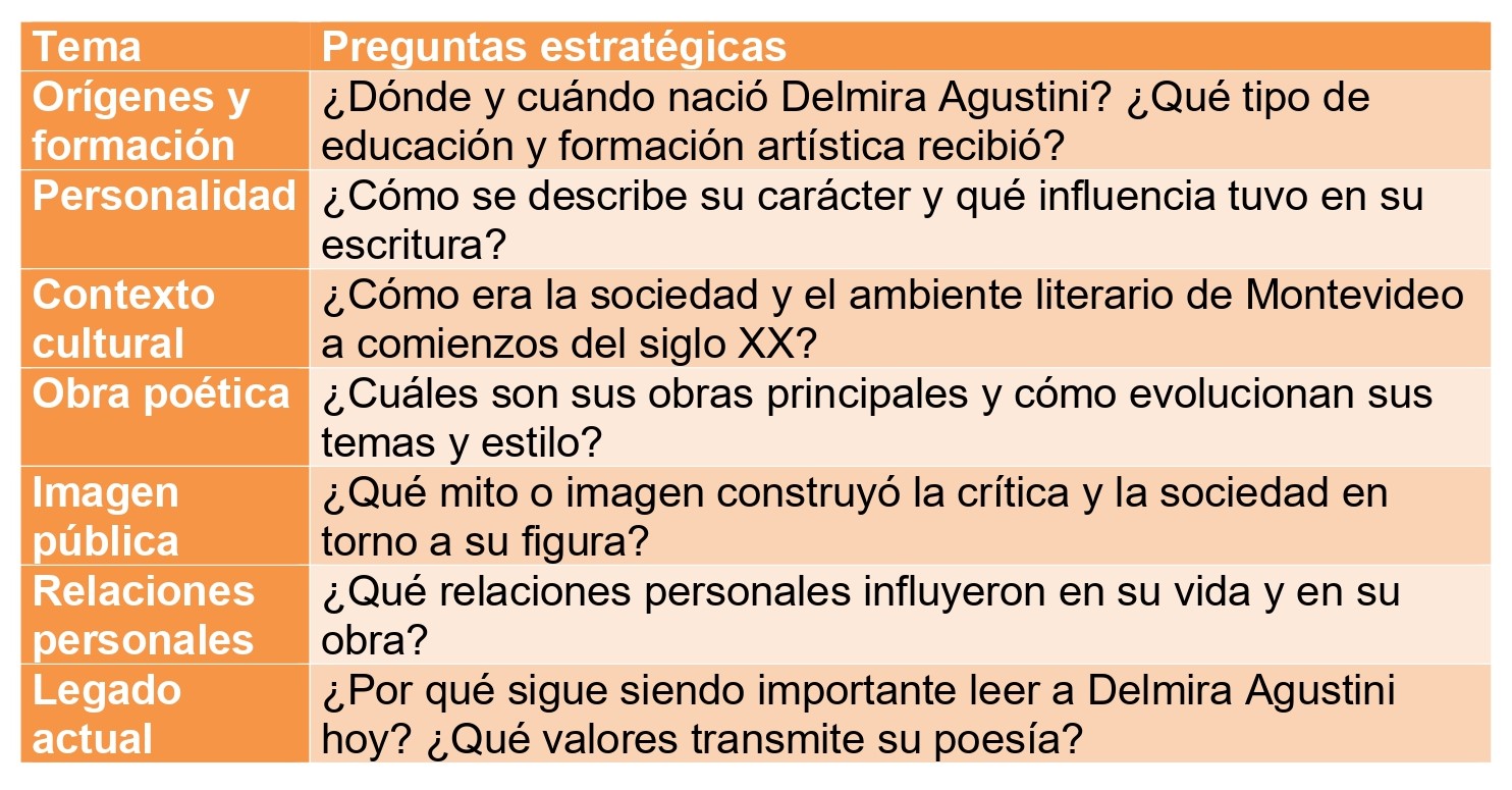- A partir de la biografía publicada en el Centro Virtual Cervantes (el enlace está abajo de la propuesta), realiza una investigación para conocer la vida, obra y contexto de la poetisa Delmira Agustini.